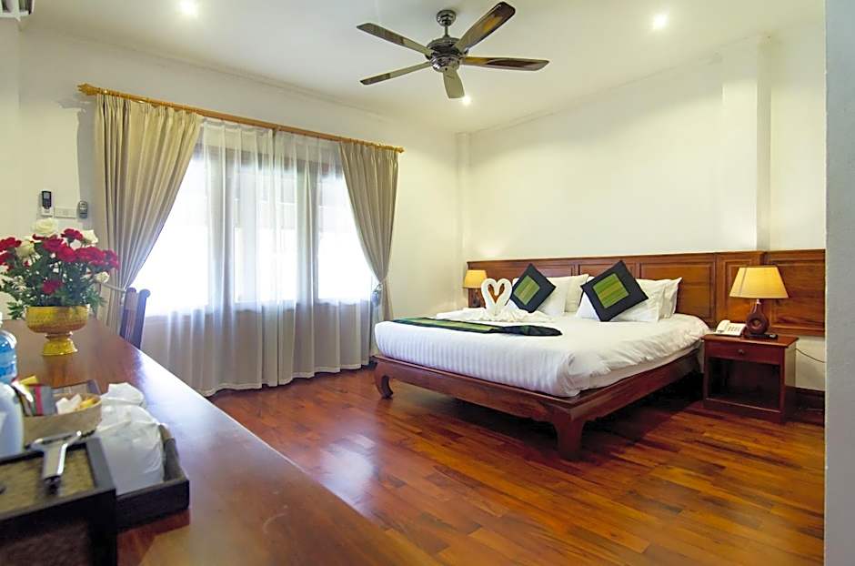 Fitted with wooden furnishing, room offers views of the garden or Monk's alms from the balcony.